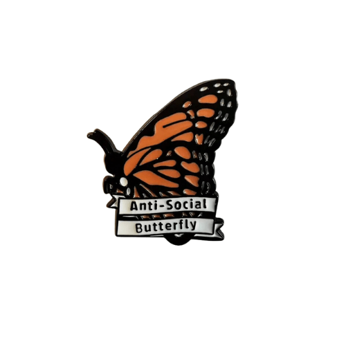 For those who love their solitude but still enjoy a little flair, this "Anti-Social Butterfly" enamel pin is your new spirit badge. Featuring a beautifully detailed butterfly with a hilariously ironic twist, this pin is perfect for introverts who prefer their social interactions limited and optional.