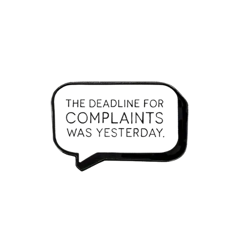 Let your accessories do the talking with the the Deadline for Complaints Was Yesterday enamel pin. Perfect for those who like to keep things clear and direct, this humorous design adds a touch of sass to any outfit.