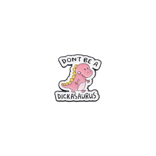 Extinction-level attitude warning! This "Don't Be a Dickasaurus" enamel pin is the ultimate way to remind people to keep their behavior Jurassic-level cool. Featuring a hilariously sassy dinosaur design, this pin is perfect for dino lovers, sarcastic souls, and anyone who enjoys a little prehistoric humor.