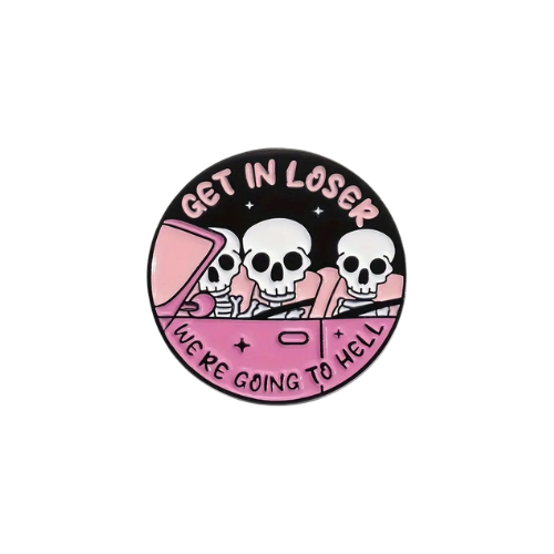 Pack your bags and prepare for eternal mischief—we’re taking a one-way trip to the underworld! This "Get In Loser, We’re Going to Hell" enamel pin is perfect for lovers of dark humor, rebellious souls, and anyone who prefers things a little… hotter. Featuring a bold and fiery design, this pin is a must-have for those who embrace chaos with style.