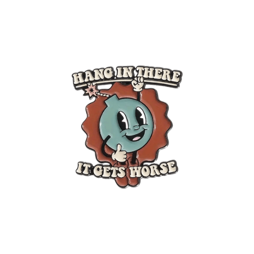 For those days when optimism just doesn’t cut it, this "Hang in There, It Gets Worse" enamel pin says what we’re all thinking—but with a smile. Featuring a hilarious cartoon character dangling from a ledge, this pin is the perfect mix of dark humour and relatable vibes.