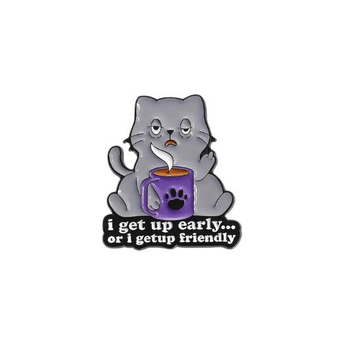 Morning person? Not quite. This "I Get Up Early or I Get Up Friendly" cat enamel pin perfectly captures the mood of every begrudging early riser—complete with a sassy cat who clearly feels the same. Whether you're running on coffee, chaos, or sheer determination, this pin speaks for you when words are too much effort.