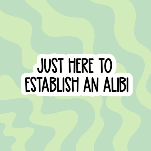 For fans of the darker side of entertainment, the "Just Here to Establish an Alibi" sticker is the perfect accessory. Embrace your love for true crime podcasts with this clever and conversation-starting decal. Crafted from high-quality PVC vinyl, it's designed to endure and makes an excellent addition to your laptop, tumbler, or kindle.