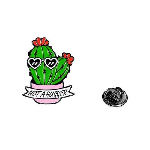 Let your accessories do the talking with the Not a Hugger cactus enamel pin. This cheeky and vibrant design is perfect for anyone who loves a bit of humour and bold self-expression.
