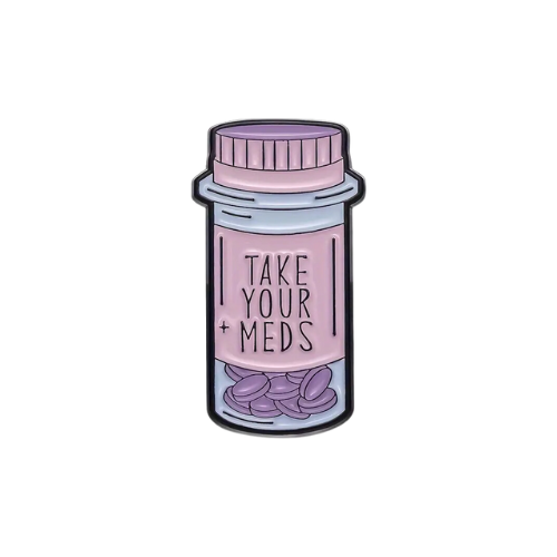 A stylish and supportive reminder that self-care includes taking your meds! This "Take Your Meds" Purple enamel pin features a sleek, eye-catching design with a calming purple hue, perfect for mental health advocates, medical professionals, or anyone who wants a little extra encouragement in their daily routine.