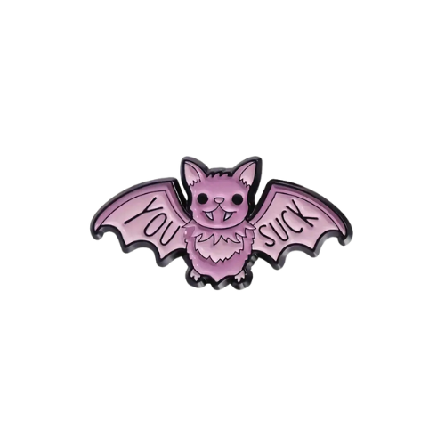 Fangs out, attitude on point—this "You Suck" Bat enamel pin is the perfect blend of spooky and sassy! Featuring an adorable yet cheeky vampire bat, this pin is ideal for lovers of dark humor, Halloween vibes, and all things nocturnal. Whether you're a goth at heart, a horror fan, or just looking for a playful way to throw some shade, this pin has you covered.